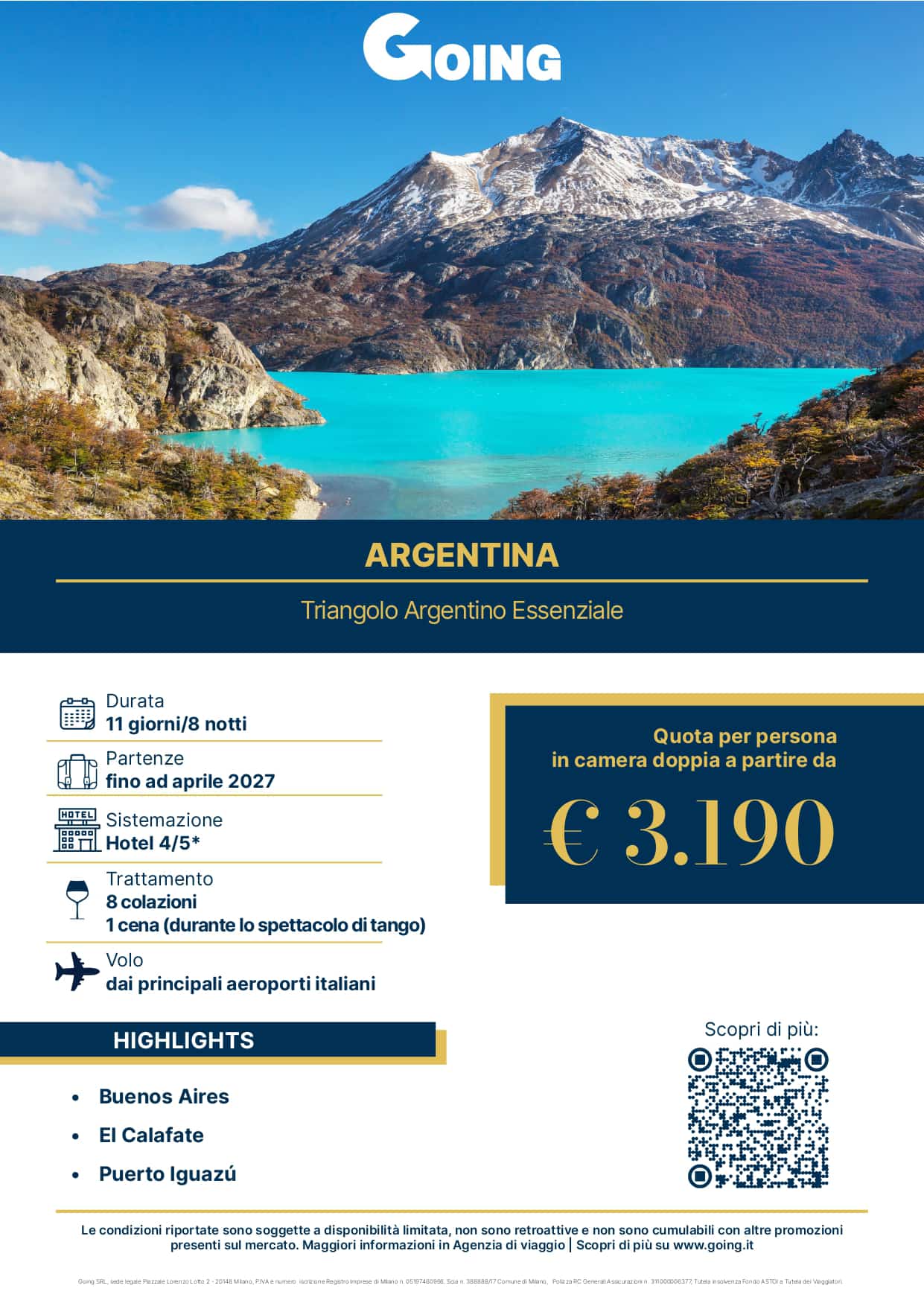 Un emozionante tour per i luoghi più iconici dell'Argentina, dalla cosmopolita capitale Buenos Aires, ai ghiacciai perenni a El Calafate per arrivare infine alle meravigliose cascate dell'Iguazù